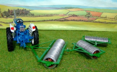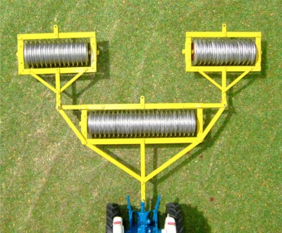 Fully-working steel-framed model consisting of 2, 4' rollers that trail an 8' unit by means of folding stays in work or trailing in line when moving fields or "snaking" down the road!